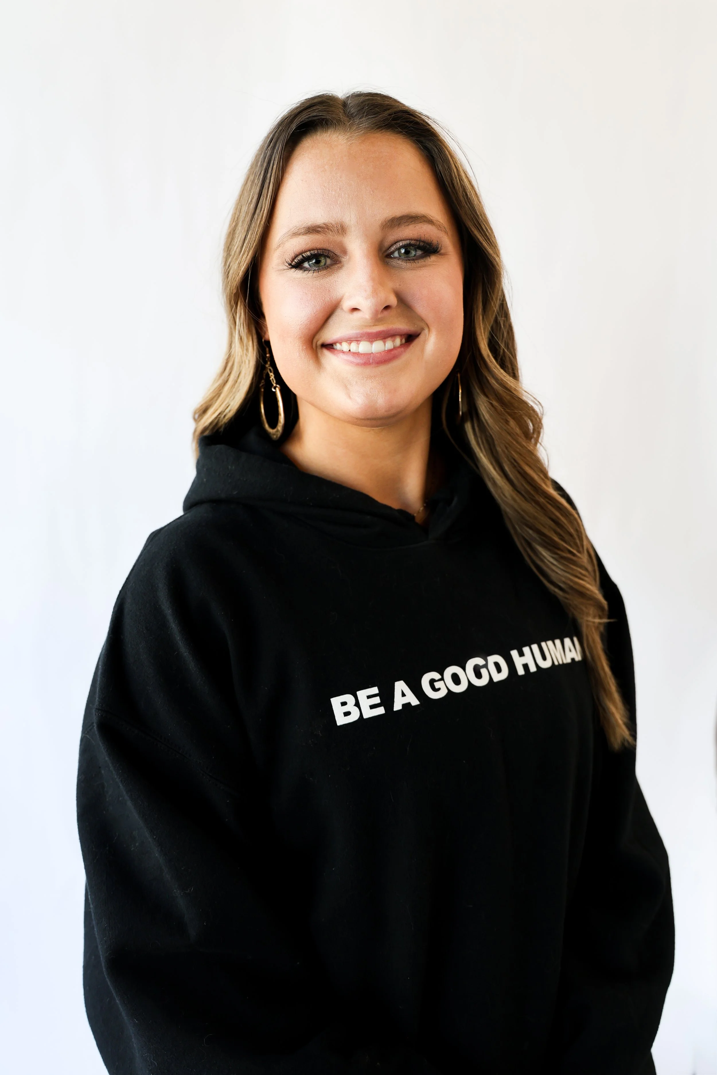 Our Be a Good Human hoodie is here—black, bold, and made for everyday wear. Featuring the LEC logo and our signature phrase front and center.
